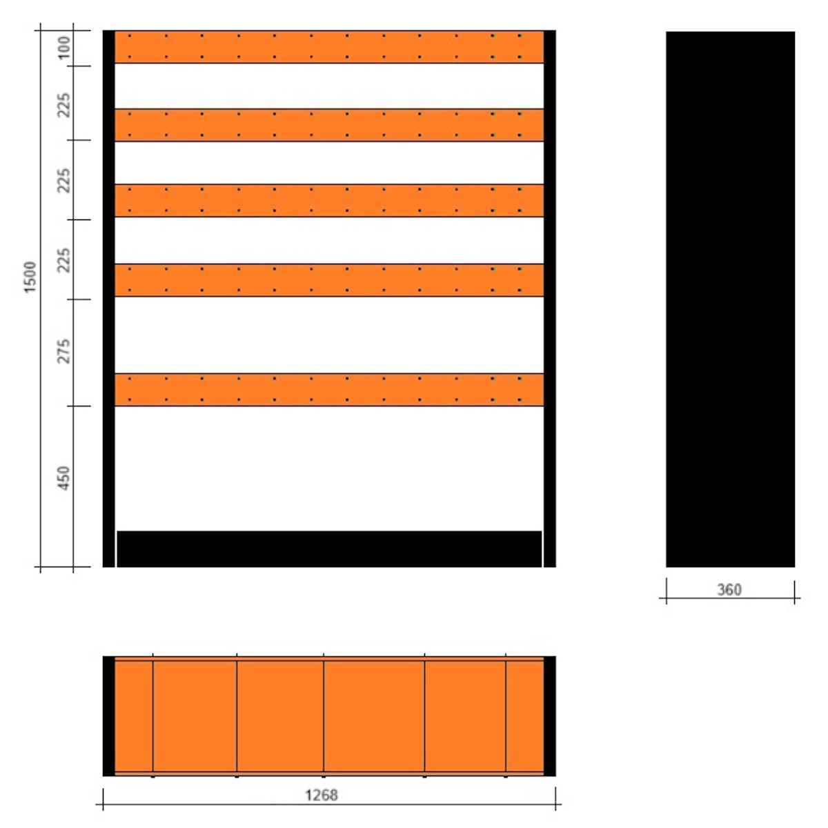 Modulo a vasche mm. 1268x360x1500h composto da: