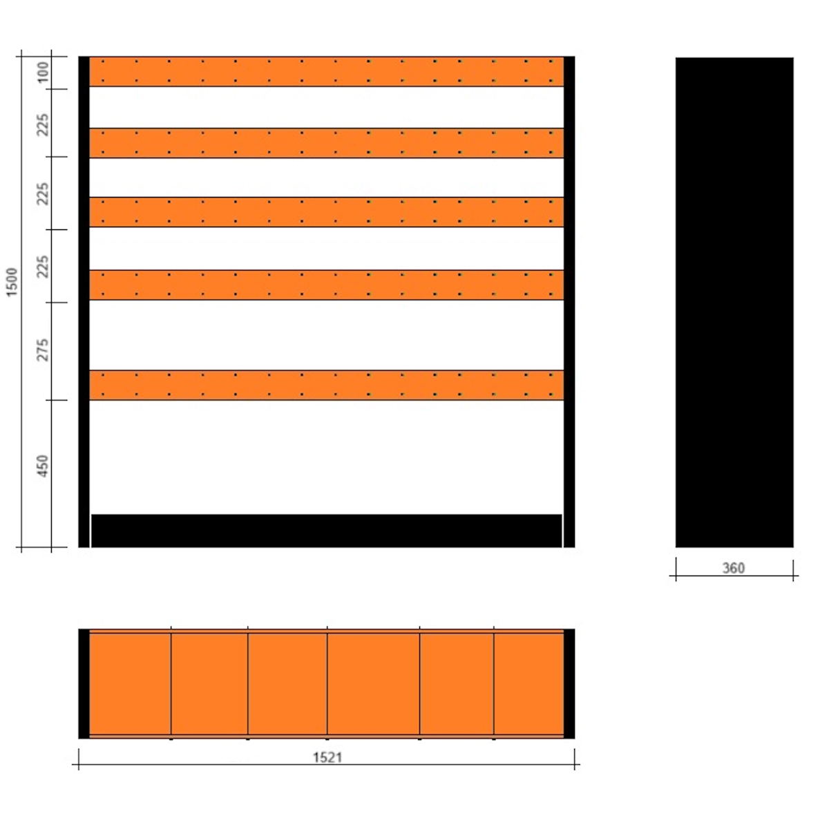 Modulo a vasche mm. 1521x360x1500h composto da: