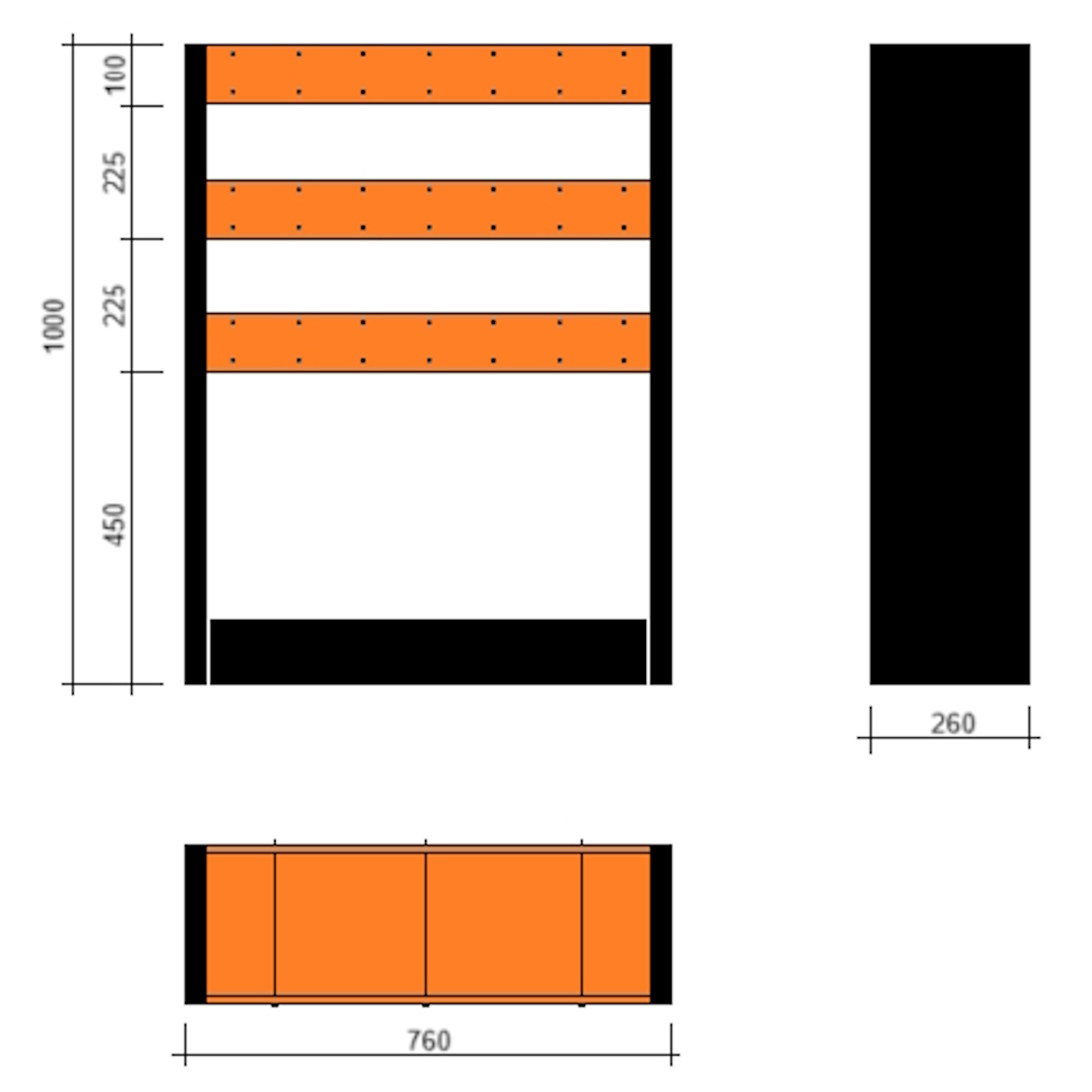 - 3x vasca mm. 760x260x100 completa di tappetino in gomma e 3 divisori